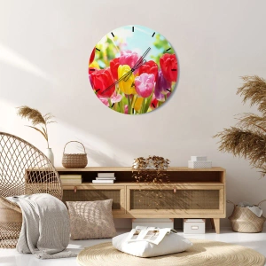 Väggklocka - Klocka på glas - Det är vi, majfärgerna! - 30x30 cm