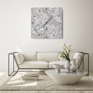 Väggklocka - Klocka på glas - Fjäderstorm - 40x40 cm