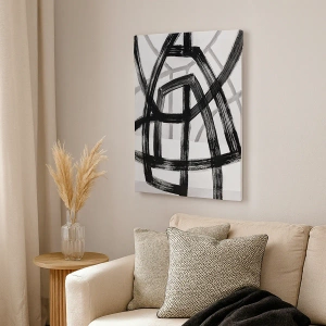 Motivet med korsande linjer återspeglar den enkelhet och klarhet som är karakteristiska drag för samtida konst. Den minimalistiska designen introducerar elegans och balans i interiörer, medan kontrasterande färger ger utrymmet djup och en modern karaktär.