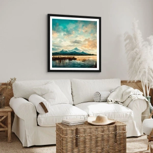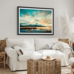 Affisch i svart ram - Pittoreskt bergslandskap vid solnedgången - 50x70cm - Under himlens skydd - Modern väggdekoration för vardagsrum och sovrum ARTTOR