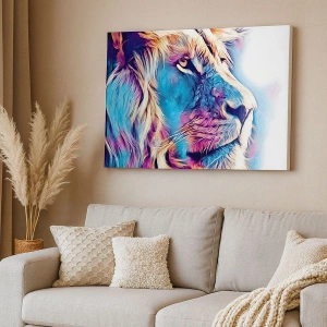 Canvastavla - Bild på duk - Porträtt av ett lejon i livfulla, abstrakta färger - 70x50cm - Naturens klokhet - Modern väggdekoration för vardagsrum och sovrum ARTTOR