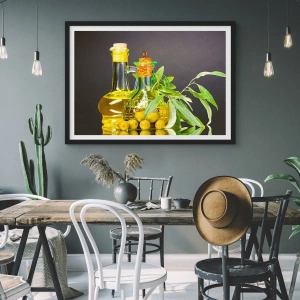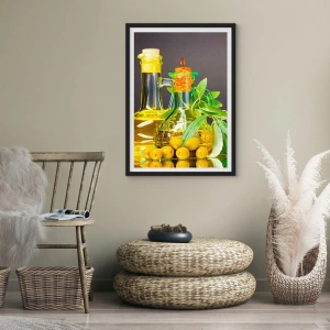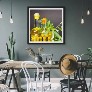 Affisch i svart ram - Stilleben med oliver och olivolja - 30x30 cm