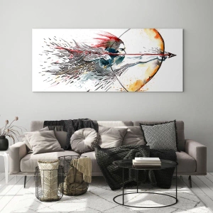 Glastavla - Bild på glas - Mytomspunnen kämpe med brinnande båge - 80x120 cm