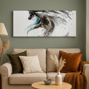 Målningen Svarte prinsens galopp är inte bara en dekoration, utan också ett konstverk som ger energi och elegans till din inredning. Dess dynamiska natur och konstnärliga uttryck inspirerar och glädjer varje dag, och ger en unik stil och djup till din inredning.