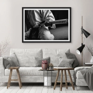 Affisch i svart ram - Samuraj med ett svärd i ett svartvitt fotografi - 50x70cm - Kämpens själ - Modern väggdekoration för vardagsrum och sovrum ARTTOR
