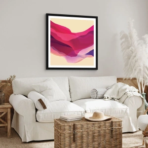 Affisch i svart ram - Abstrakta vågor i nyanser av lila på en ljus bakgrund - 50x70cm - Purpurfärgade vågor - Modern väggdekoration för vardagsrum och sovrum ARTTOR