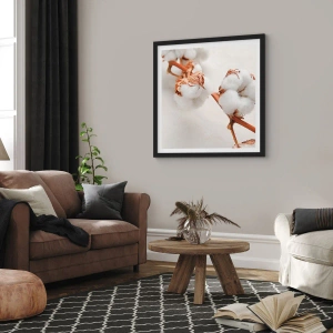 - Postern har subtila bomullskvistar mot en ljus bakgrund, vilket skapar en minimalistisk och harmonisk bild. Perfekt för interiörer som vardagsrum, sovrum eller kontor. Den svarta ramen ger elegans och klass till dekorationen.