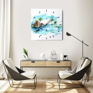 Väggklocka - Klocka på glas - Någonstans i Stilla havet - 40x40 cm