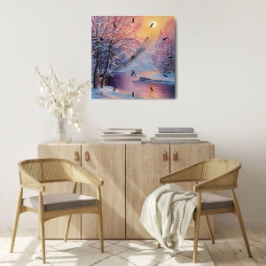 Väggklocka - Klocka på glas - Vinterns färger - 40x40 cm