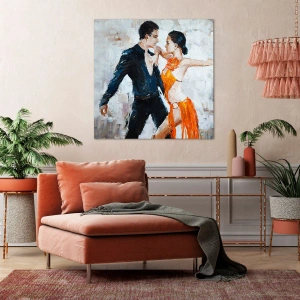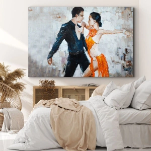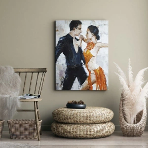 - Denna målning föreställer ett dynamiskt par som dansar i latinamerikansk stil. Full av känslor och passion, är denna bild en idealisk inredningsdekoration.