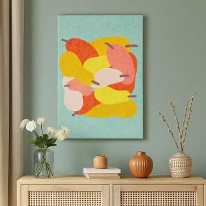 Väggkonst - Prova sommarsolen - Färgglada abstrakta päron mot grön bakgrund