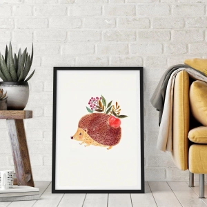 - Denna poster föreställer en charmig igelkott som bär ett äpple och kvistar på ryggen, återgiven i en delikat akvarellteknik. Varma färger och en subtil illustrationsstil ger den en unik, sagoliknande känsla.