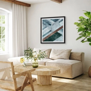 Affisch i svart ram - Geometrisk komposition i nyanser av blått och brunt - 50x70cm - Sofistikerad elegans i geometri - Modern väggdekoration för vardagsrum och sovrum ARTTOR