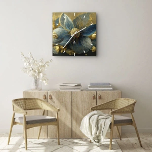 Väggklocka - Klocka på glas - Blommande av guld - 30x30 cm