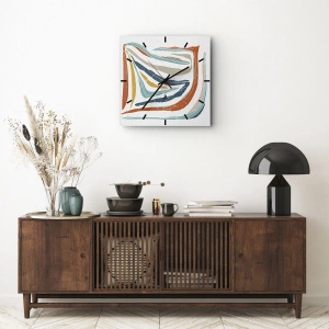 Väggklocka - Klocka på glas - Vänligt leende abstraktion - 30x30 cm