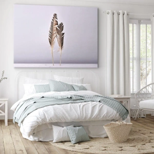 - Denna canvastavla avbildar fina fjädrar mot en ljus bakgrund i minimalistisk stil. Perfekt för inredningar som värdesätter subtilitet och harmoni.