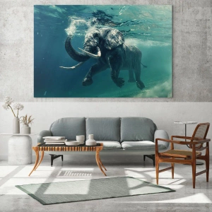 Motivet med en undervattenselefant är både originellt och universellt och harmoniserar med moderna, minimalistiska och klassiska inredningsdesigner. Målningen är perfekt för vardagsrum, kontor och sovrum, och ger utrymmet en elegant och exotisk touch.