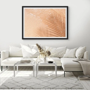 - Denna diskreta poster avbildar skuggan av palmblad på gyllene sand. Ett perfekt val för inredning inspirerad av naturen och ett tropiskt klimat.