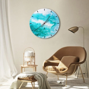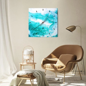 Väggklocka - Klocka på glas - Abstrakt våg i nyanser av blått och turkos - 30x30cm - I elementets kärna - Modern väggdekoration för vardagsrum, kök och sovrum ARTTOR