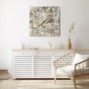 Väggklocka - Klocka på glas - Porträtt av en kvinna med linjekonturer mot en ljus bakgrund - 30x30cm - Väntar på avkodning - Modern väggdekoration för vardagsrum, kök och sovrum ARTTOR