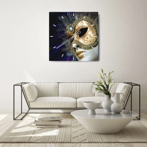 Väggklocka - Klocka på glas - Venedigporträtt i guld - 30x30 cm