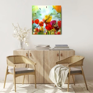 Väggklocka - Klocka på glas - Solens alla färger - 30x30 cm