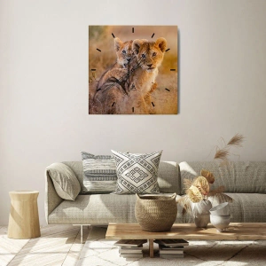 - En väggklocka med ett charmigt motiv av två lejonungar på savannen. Perfekt för naturälskare och naturliga, varma färger som kommer att skapa harmoni i alla inredningar.