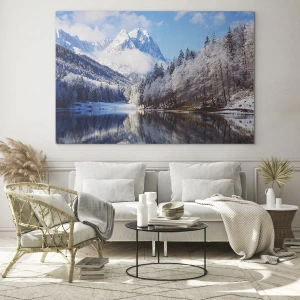 Väggkonst - Snövakt - Vinterlandskap med berg och en frusen sjö