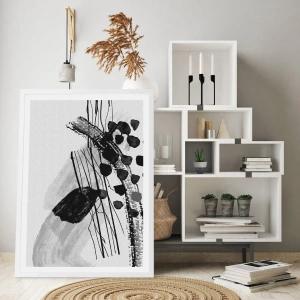 Affisch i vit ram - Svartvit organisk abstraktion - 70x100 cm