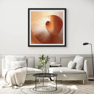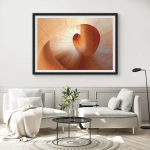 Affisch i svart ram - Träspiralstruktur med en gyllene nyans - 50x70cm - Arkitektonisk serpentin - Modern väggdekoration för vardagsrum och sovrum ARTTOR