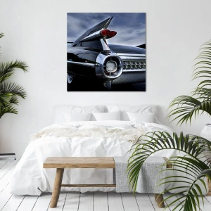 - Denna målning föreställer en klassisk retrobil med glänsande krom och distinkta fenor. Det är den perfekta dekorationen för bilentusiaster och entusiaster av vintagestil.