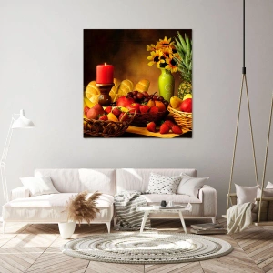 Canvastavla - Bild på duk - Stilleben med bröd och frukt - 120x80 cm