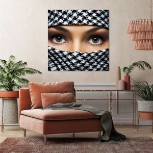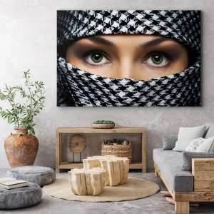 Canvastavla - Bild på duk - Beslöjad grönögd skönhet - 120x50 cm