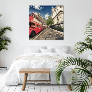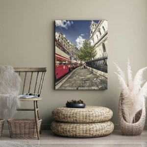 Canvastavla - Bild på duk - Londongata i grå och röd - 100x70 cm