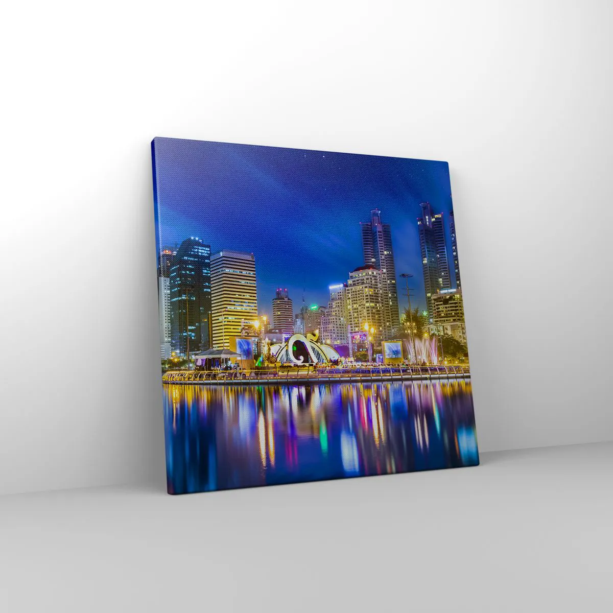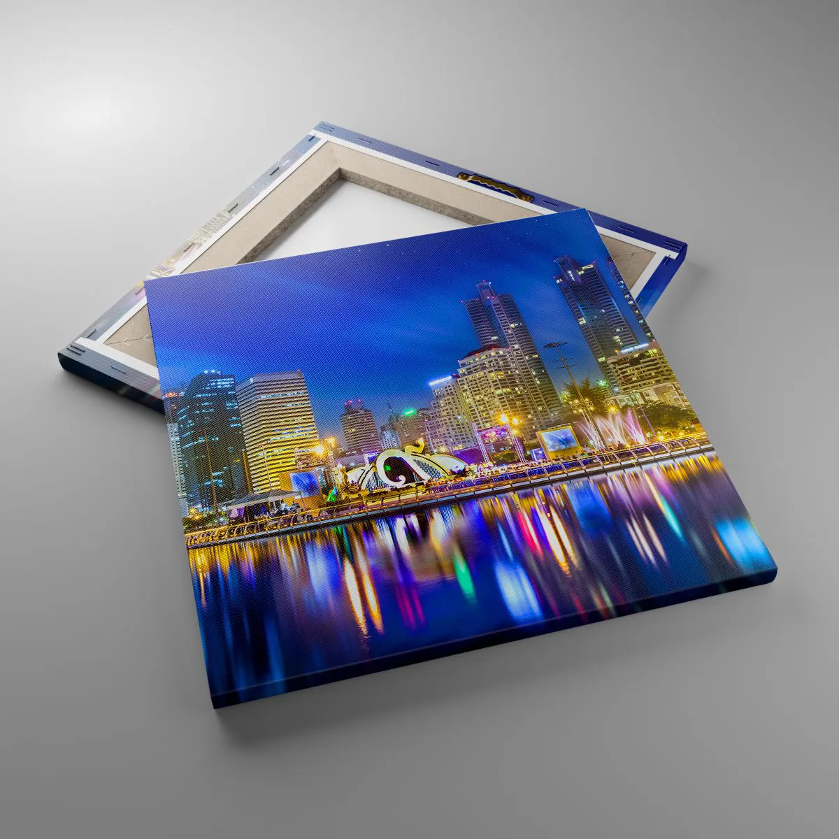 Canvastavla - Bild på duk - Metropolens regnbågsnatt - 40x40 cm