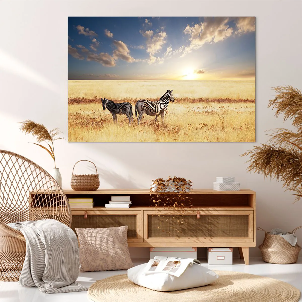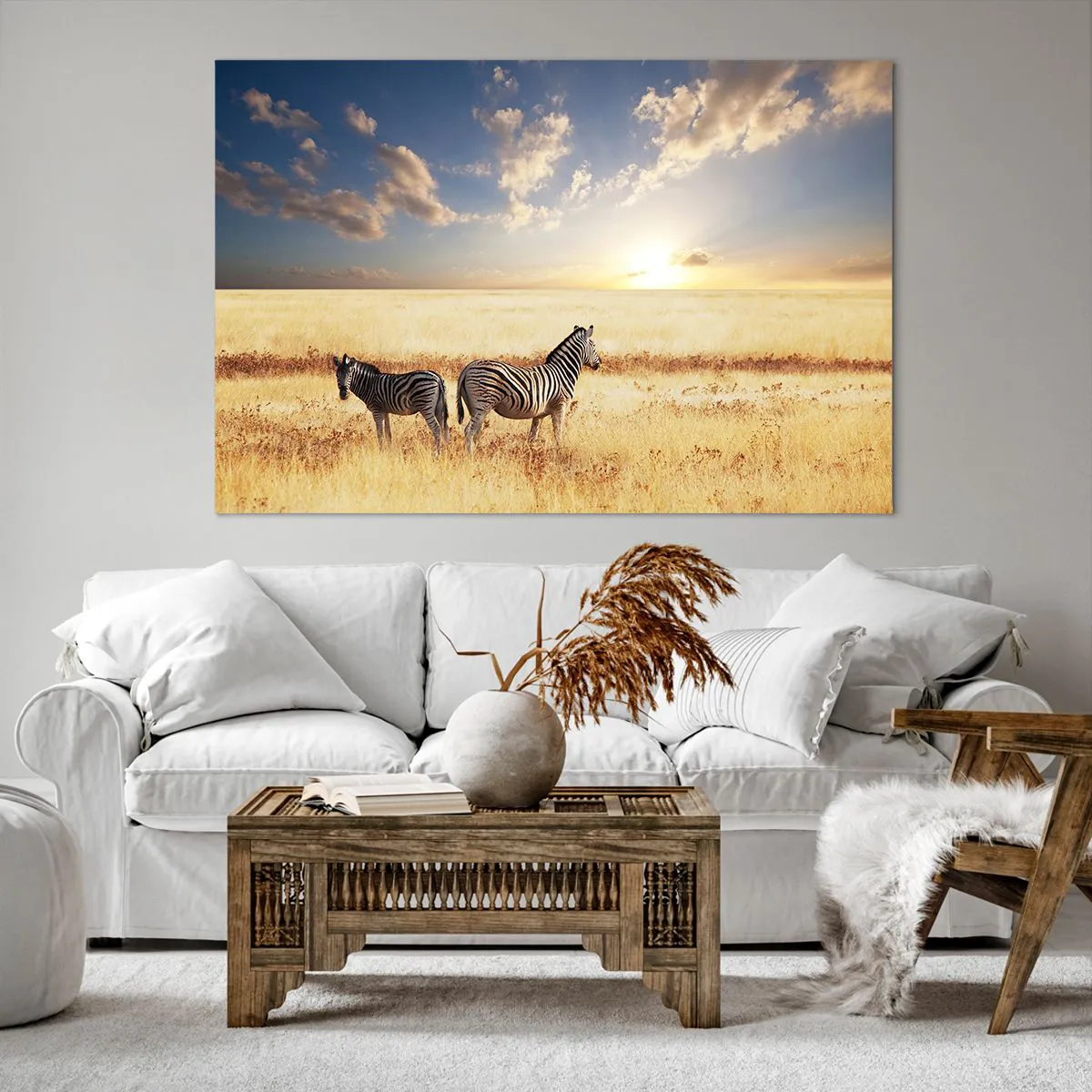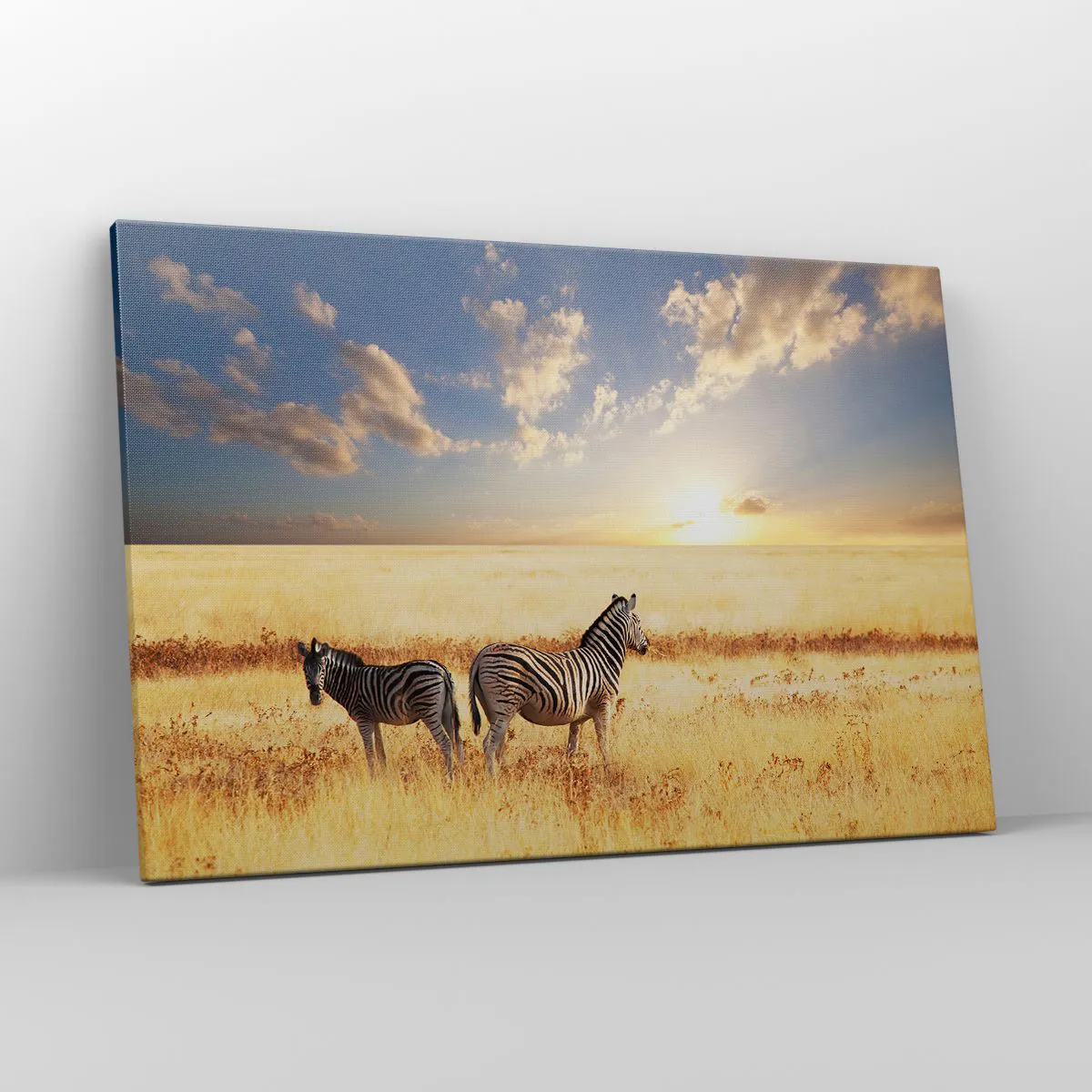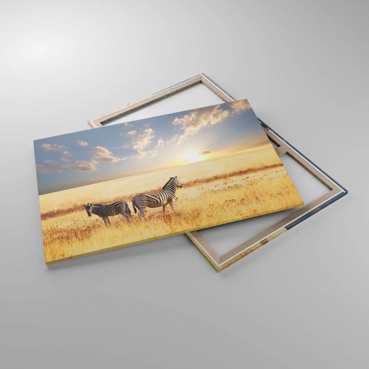 Duken är uppspänd i ramen. Sidor och kanter är täckta med tryck och skapar en fortsättning av bilden. Bilden är klar att hängas på väggen. Varje produkt har en ögla som är fastsatt i ramen samt en monteringssats (skruv + plugg).