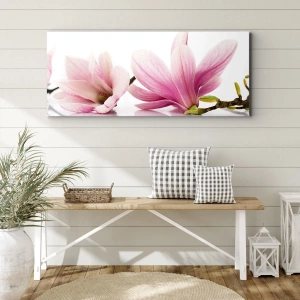 Canvastavla - Bild på duk - Fina rosa magnolior på vit bakgrund - 70x50cm - Lätta som vårkänslan - Modern väggdekoration för vardagsrum och sovrum ARTTOR