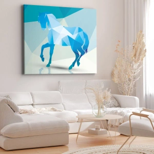 Canvastavla - Bild på duk - Geometrisk silhuett av en häst i nyanser av blått - 70x50cm - Geometrisk häst i turkos - Modern väggdekoration för vardagsrum och sovrum ARTTOR