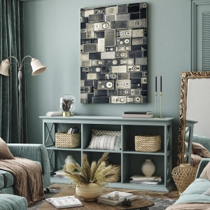 Lägg till en unik touch av teknik och konst till din interiör med denna originella dekoration. Målningen "Collection of retro-style speakers" är ett perfekt val för personer som värdesätter unik stil och kreativa lösningar inom inredning.