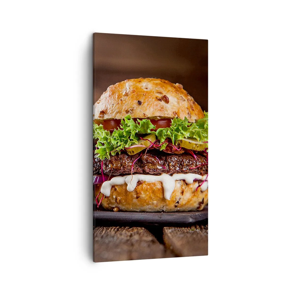 Duken är uppspänd i ramen. Sidor och kanter är täckta med tryck och skapar en fortsättning av bilden. Bilden är klar att hängas på väggen. Varje produkt har en ögla som är fastsatt i ramen samt en monteringssats (skruv + plugg).