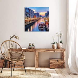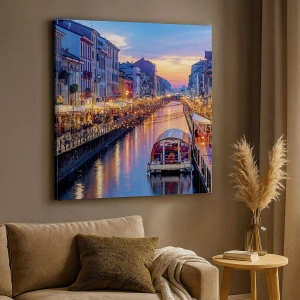 - Denna canvastavla föreställer en kvällsvy över kanalen, upplyst av färgglada byggnader. Det är det perfekta tillskottet till alla eleganta och stilfulla interiörer.