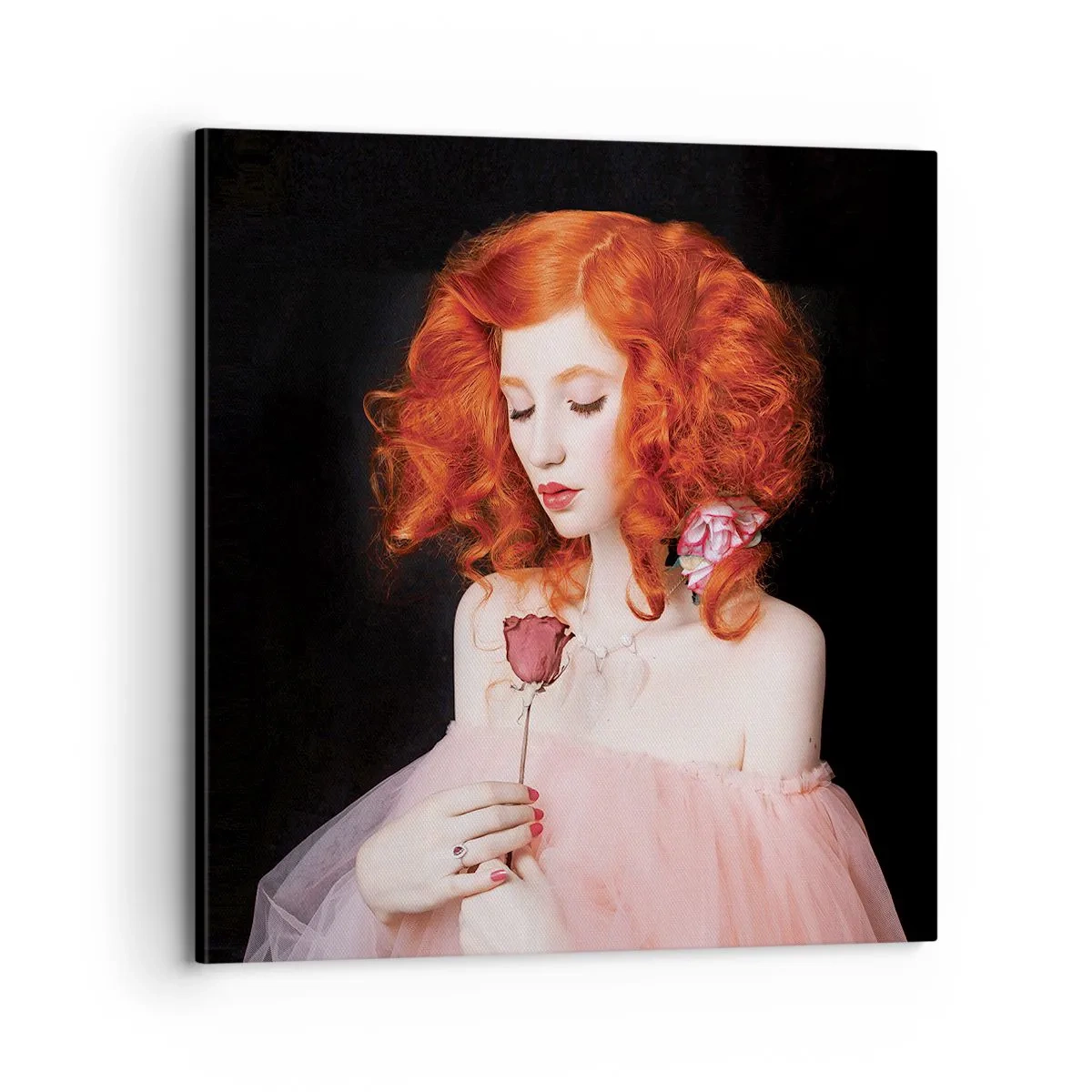 Duken är uppspänd i ramen. Sidor och kanter är täckta med tryck och skapar en fortsättning av bilden. Bilden är klar att hängas på väggen. Varje produkt har en ögla som är fastsatt i ramen samt en monteringssats (skruv + plugg).