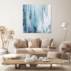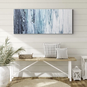 - Denna canvastavla på 70x50 cm visar abstrakta blå och vita ränder som påminner om istappar. De subtila färgerna och de delikata mönstren kompletterar moderna och minimalistiska interiörer perfekt och ger en harmonisk touch.