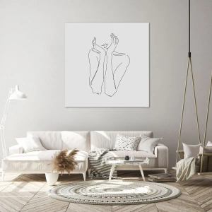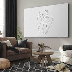 Denna canvastavla på 70x50 cm, med titeln "Vad flickor drömmer om", presenterar en minimalistisk linjeteckning av ett ansikte och en hand. Formens renhet och designens subtilitet ger en atmosfär av harmoni och elegans till inredningen. Linjekonsten, i sin enkelhet, passar perfekt in i moderna trender.