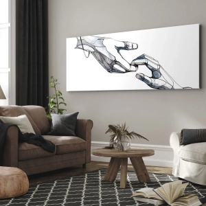 Duken är uppspänd i ramen. Sidor och kanter är täckta med tryck och skapar en fortsättning av bilden. Bilden är klar att hängas på väggen. Varje produkt har en ögla som är fastsatt i ramen samt en monteringssats (skruv + plugg).
