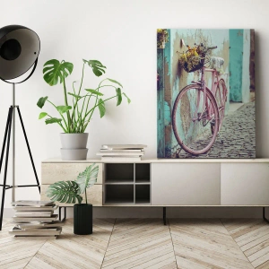 Cykelmotivet och de charmiga arkitektoniska detaljerna gör tavlan idealisk för vintage-, retro- eller romantiska interiörer. Det är ett utmärkt val för ett vardagsrum, sovrum eller hall, där den kan bli en dekorativ blickfångare och betona utrymmets individuella karaktär.