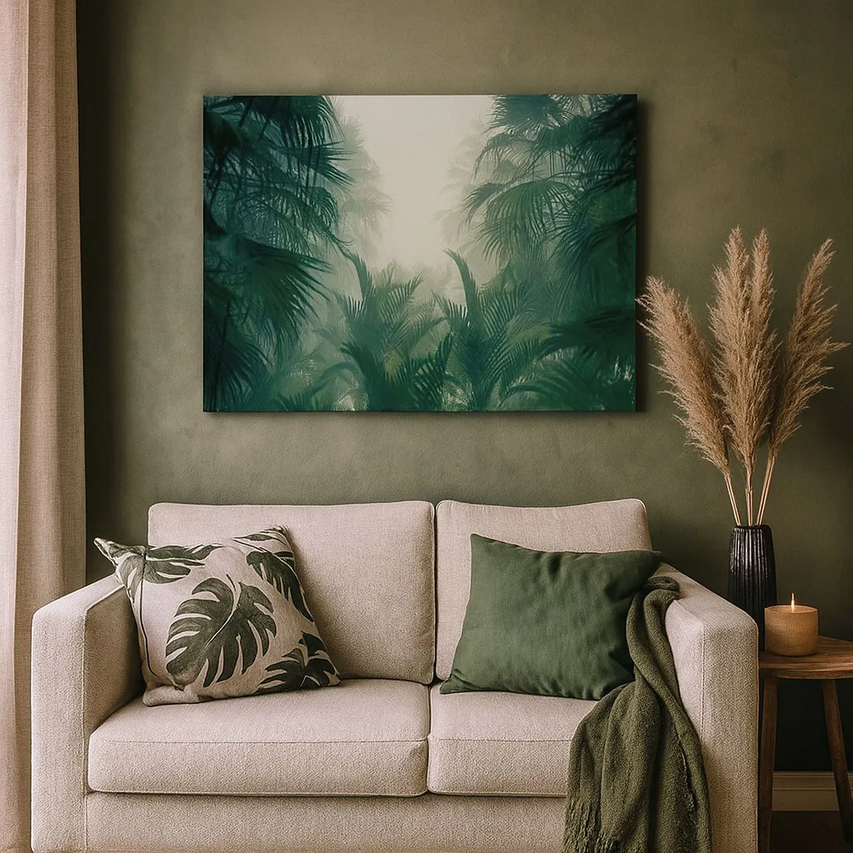 - Denna canvastavla på 70x50 cm avbildar tropisk vegetation i tät dimma. Det är den perfekta dekorationen för interiörer som längtar efter avkoppling, lugn och en exotisk atmosfär.