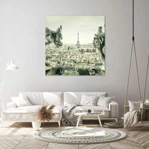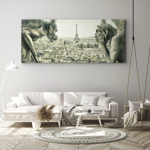 Den gotiska gargoylestilen drar till sig ögat och betonar verkets historiska karaktär. Panoramabilden över Paris med Eiffeltornet i bakgrunden är inte bara en hyllning till fransk arkitektur, utan också en symbol för drömmar och en romantisk atmosfär. Detta konstverk är det perfekta valet för alla som vill ge sitt hem en touch av parisisk charm.