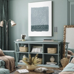 - Ett modernt, minimalistiskt tryck med ett abstrakt mönster i blå nyanser med fina prickar. Ett perfekt tillskott till moderna eller skandinaviska inredningar, det ger elegans och lugn.