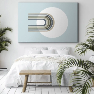Målningen utmärker sig för sina delikata färger och noggrant utformade komposition. Kombinationen av dynamiska linjer med en geometrisk cirkel skapar ett visuellt intryck av balans och harmoni. Pastellfärger ger en touch av lätthet till interiören, och formens enkelhet möjliggör enkel anpassning till en mängd olika arrangemang.